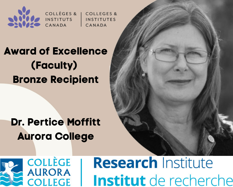 “Dr. Pertice Moffitt embodies the values Aurora College seeks in instructional and research staff: a dedicated educator and scientist, with an innate capacity to connect with individuals and adapt her teaching to meet the varied needs of learners.  The positive impact Dr. Moffitt has had towards the success of Northwest Territories’ nursing education programs is remarkable. Her legacy will live within Aurora College for generations of health care professionals and researchers.”