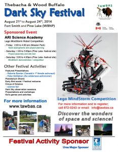 The Thebacha and Wood Buffalo Astronomical Society presents the Dark Sky Festival in partnership with Parks Canada and with sponsorship from Aurora College. Join the ARI Science Academy to compete in our first ever Lego MindStorm Robot competition. Use lego to build your best robot, then face-off against other robots in science challenges! Check out […]