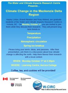 The Water and Climate Impacts Research Centre from Victoria, BC presents graduate student’s research on Climate Change in the Mackenzie Delta Region.