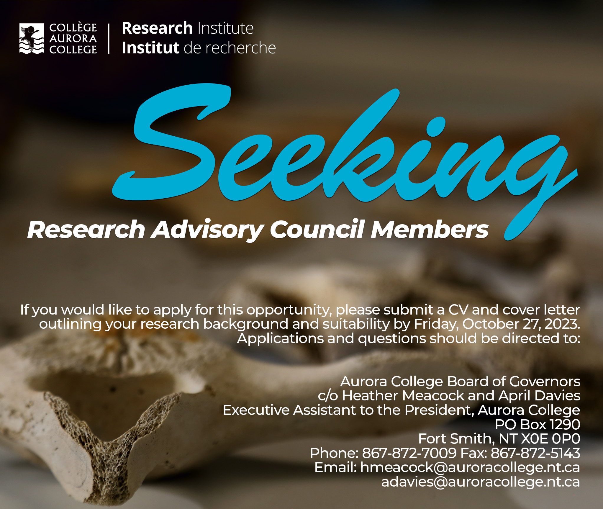Email: hmeacock@auroracollege.nt.ca or adavies@auroracollege.nt.ca