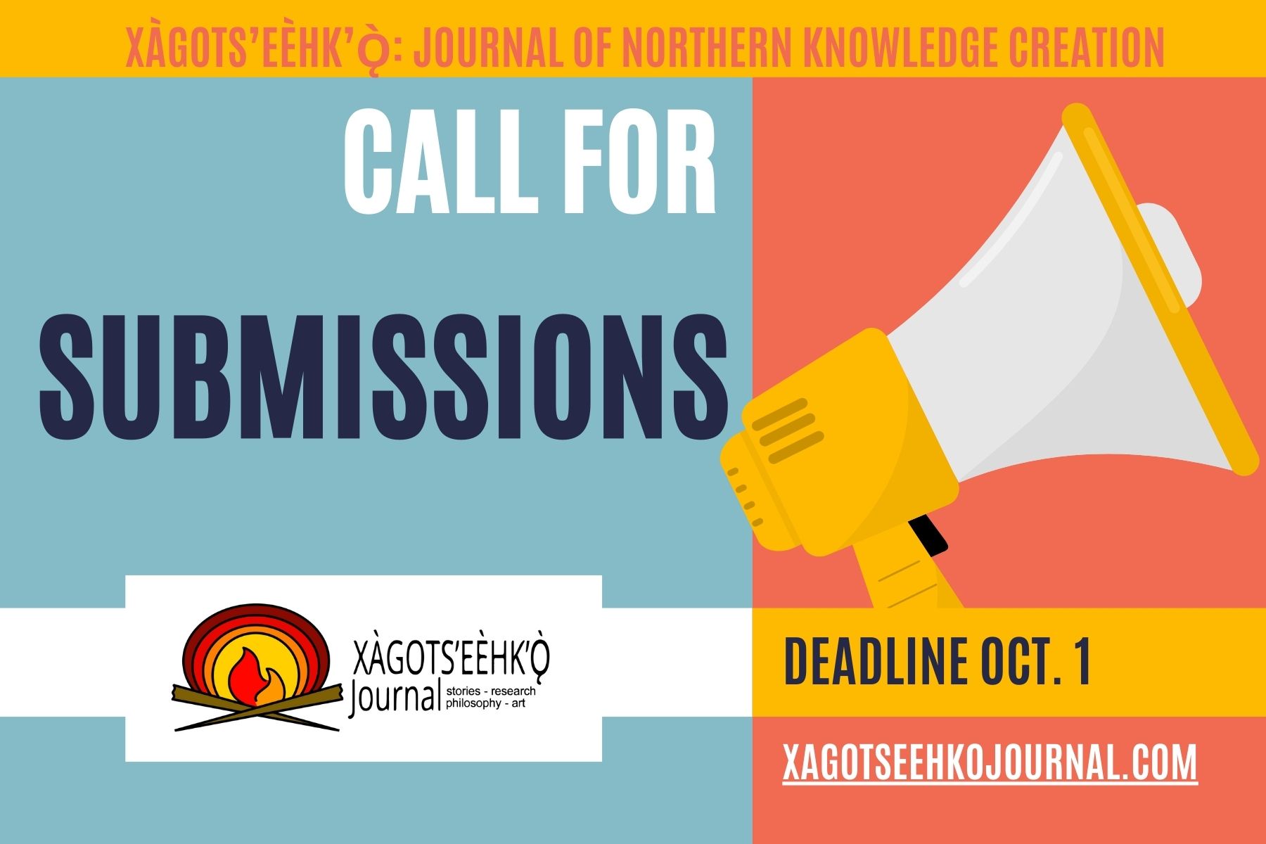 Xàgots’eèhk’ǫ̀ Journal Call for Submissions, Deadline October 1, 2024!