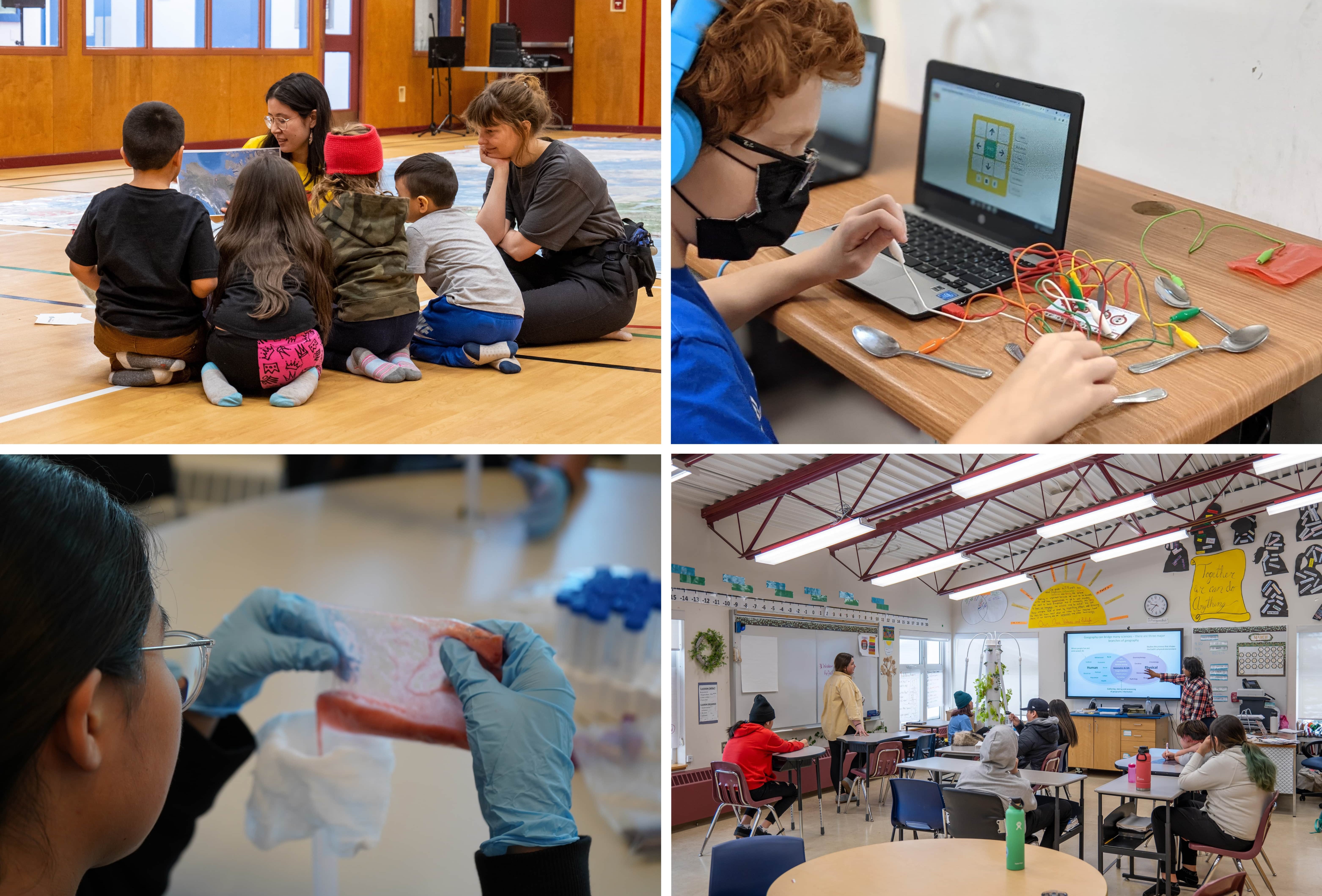 - School visits: At the heart of our outreach services are school visits. Since 2016, we've conducted hundreds of visits, bringing interactive workshops, presentations, and demonstrations to ignite curiosity and fuel a passion for STEM. We customize our content to address community needs, covering a wide range of topics from natural sciences like physics, chemistry, and biology to innovative subjects such as GIS drone mapping, coding, and 3D printing. We take immense pride in incorporating traditional Indigenous knowledge and science into our communities and continuously aim to create programming that reflects a northern context.